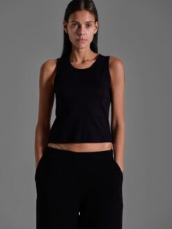 Handcrafted tank top in buttery soft lightweight wool with ribbed straps.