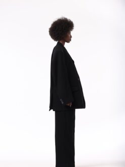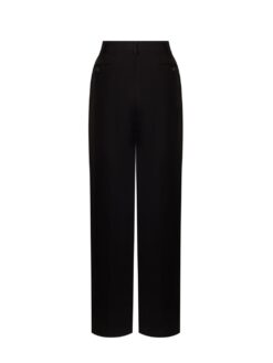 Handcrafted mid-rise tailored pants in rayon with front and back creasing, side seam pockets, and back besom pockets.