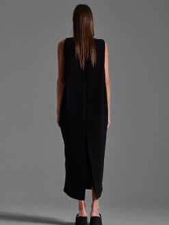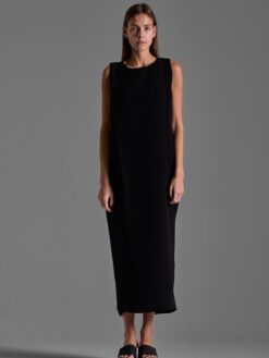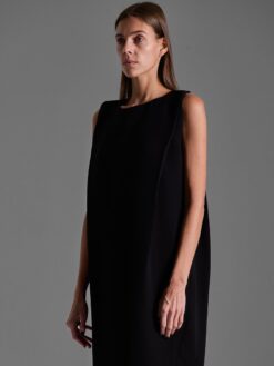 Handcrafted ankle-length dress in viscose with a straight silhouette and center back slit.